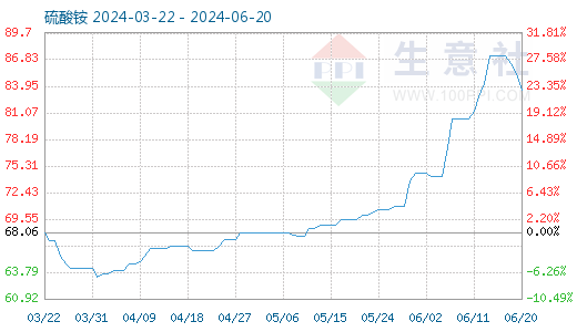據(jù)生意社商品行情分析系統(tǒng),6月18日國內(nèi)硫酸銨市場均價(jià)為1033元/噸,較6月10日國內(nèi)硫酸銨市場均價(jià)961元/噸,國內(nèi)硫酸銨市場價(jià)格上漲幅度為7.45%。